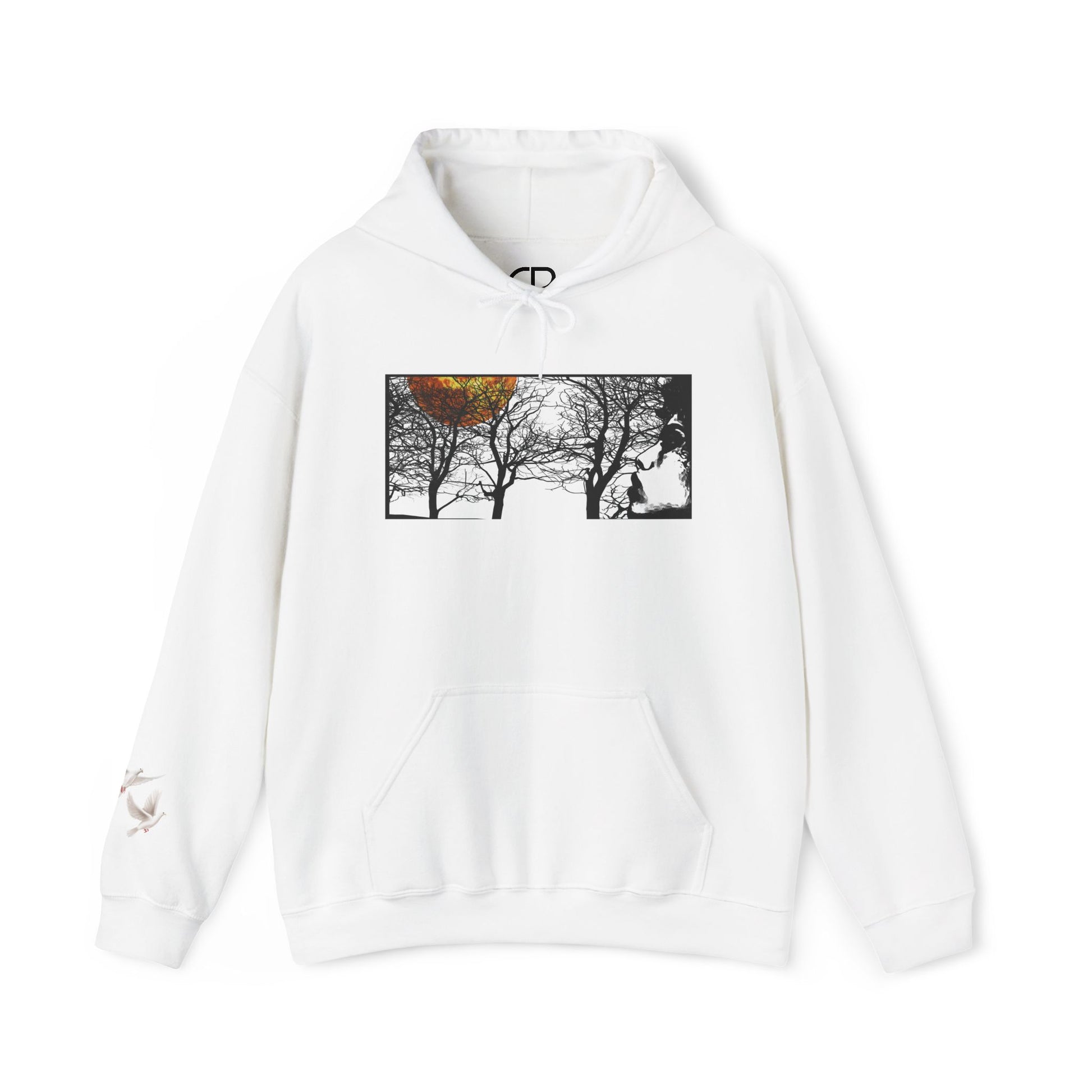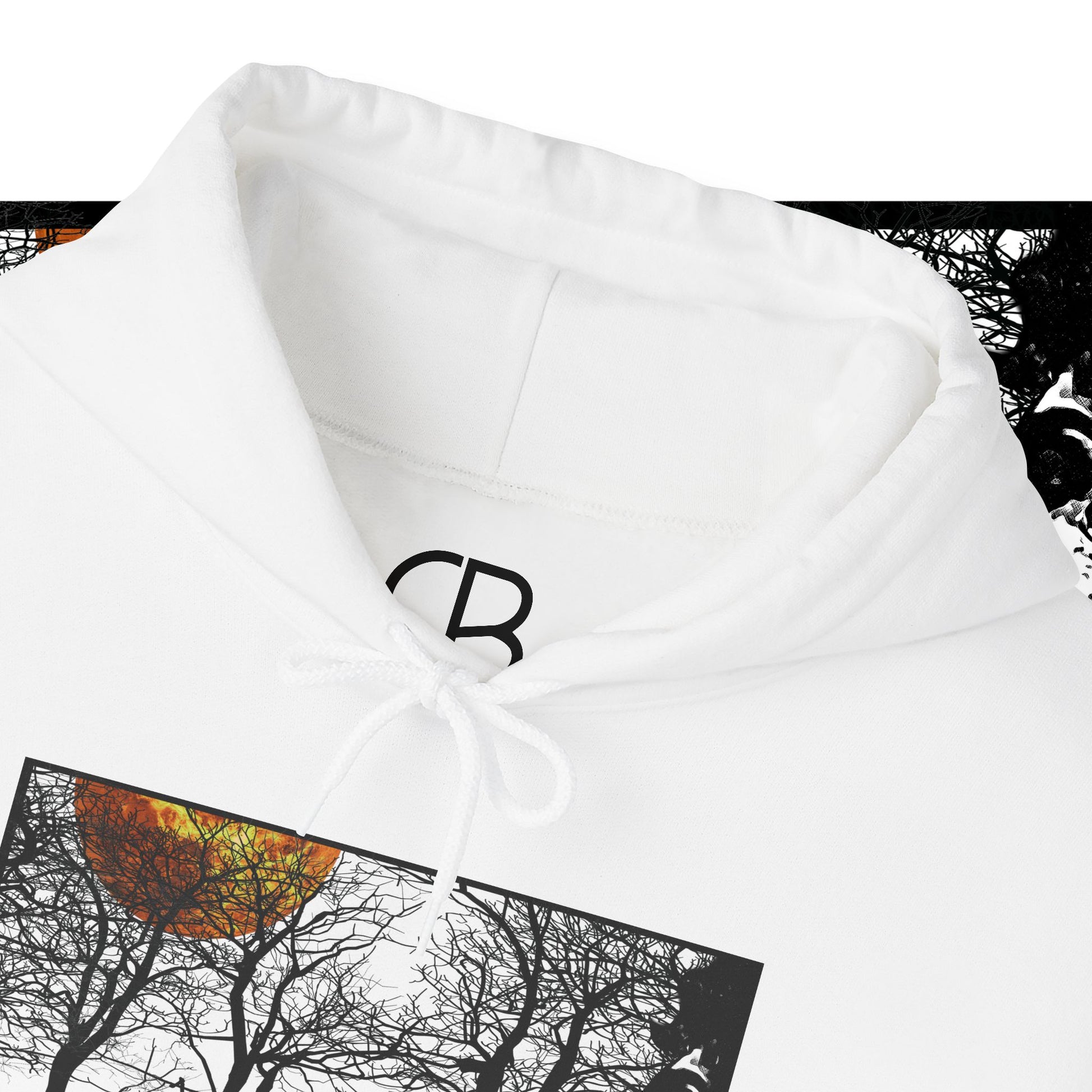 In this evocative design, Through The Wilderness, a lone figure gazes into a wilderness of barren trees, illuminated by a burning orange moon. The image speaks of solitude, inner strength, and reflection—symbolizing the moments we face our deepest thoughts against nature’s harsh beauty. The intricate branches and the powerful figure create a dynamic yet contemplative feel, reminding us to stay grounded even in times of silence and temptation.