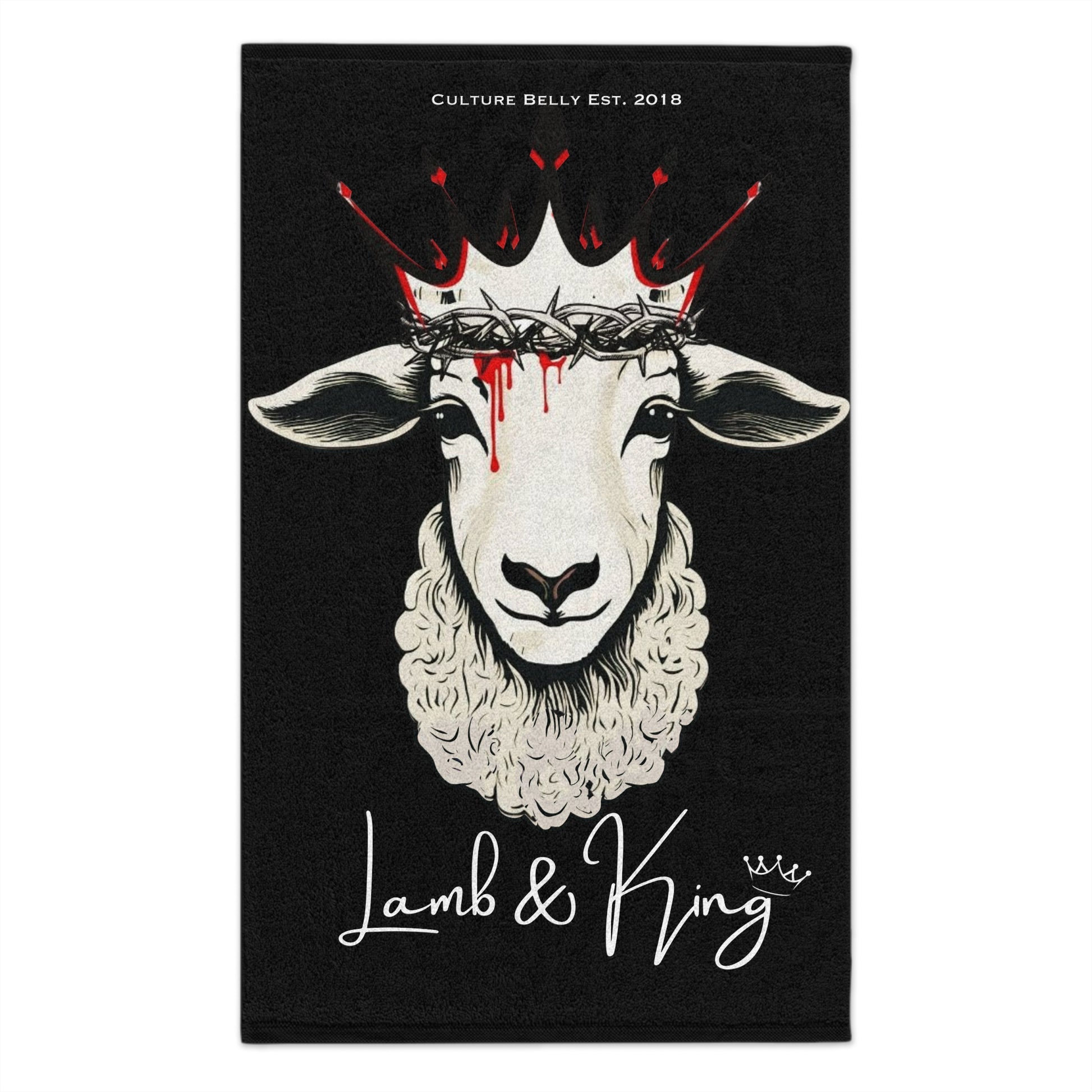 The Lamb & King Wash Cloth features the powerful crowned lamb—blood-stained and risen. It’s a reminder of the One who endured the cross and reigns eternal. Whether you’re at the gym, beach, or just walking your walk, this towel speaks truth without a word.